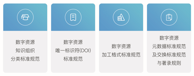 资源整合服务是按照国家公共文化数字支撑平台数字资源标准规范完成整合,其中含数字资源知识组织分类标准规范、数字资源唯一标识符(DOI)标准规范、数字资源加工格式标准规范、数字资源元数据标准规范及交换标准规范与著录规则等,及各级别各厂家资源对接元数据标准上百套。
